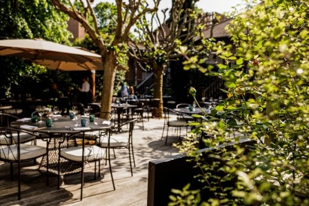 place à l’une des confidentielles tables dressées sous l’invite du très