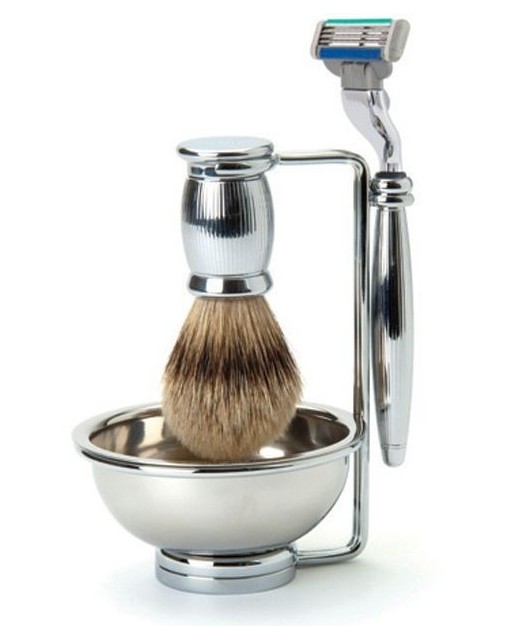 pièces incluant un rasoir compatible Gillette Mach3, un blaireau de poils