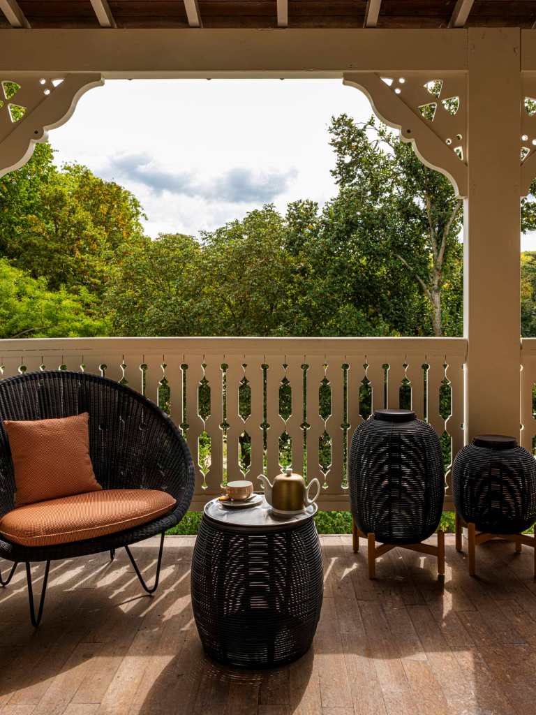 et d’osmose avec la nature environnante. Salle aux camaïeux marron